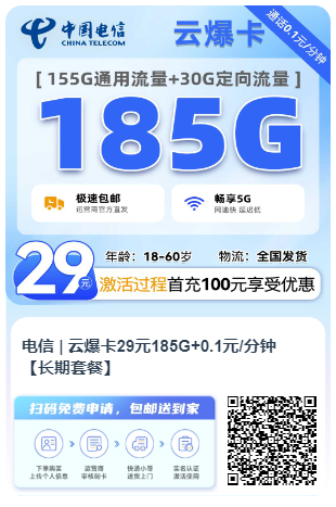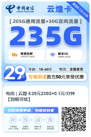电信 云琥卡29亓80G+0.1亓/分钟【长期套餐】