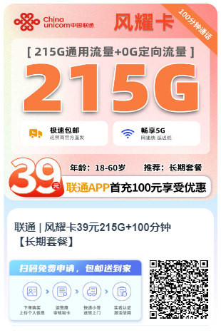 联通 风溢卡38亓145G+500分钟【自助激活】
