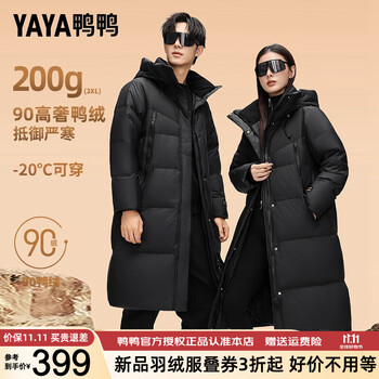 【329亓】中长款连帽羽绒服男女同款