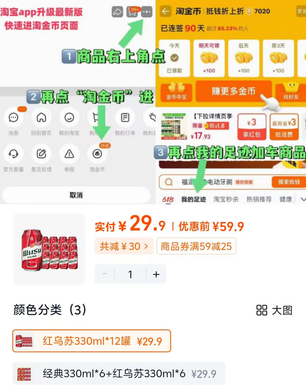 右上三个点【···】滑到最右侧,选择【淘金币】进入