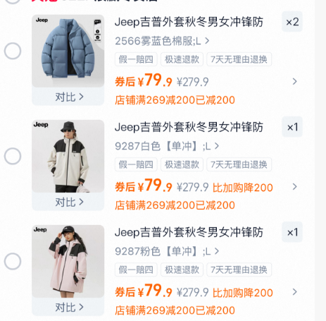 79💰Jeep吉普.三防冲锋衣/棉服保暖不臃肿 先选尺码 在选款式😍