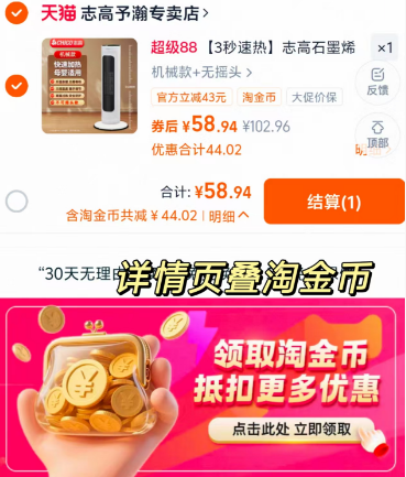 下滑详情【抢淘金币大额补贴】抇,💰36.4~