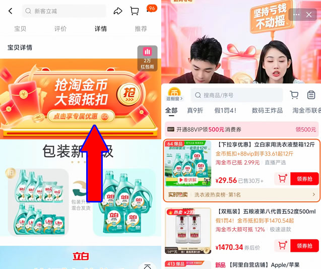 1.领取淘礼金+加购