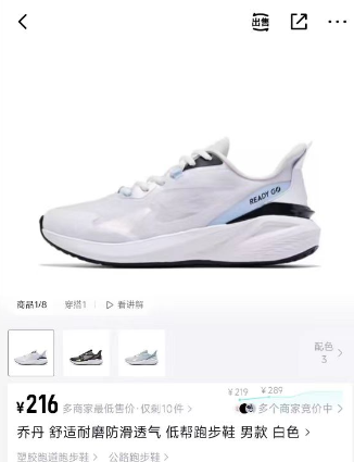 乔丹运动鞋!某物卖216!!咱们付52左右!