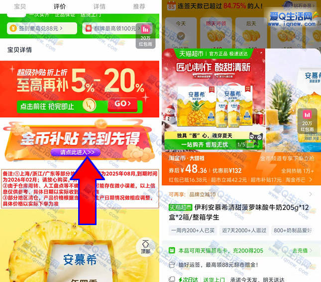 1.淘宝-天猫超市搜【安慕希】领10亓品牌金