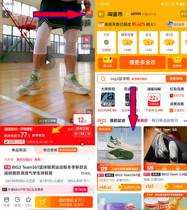 商品页右上角【···】滑至淘金币,点我的足迹