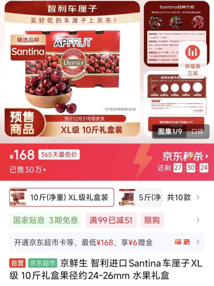 京东自营车厘子好价快冲❗
