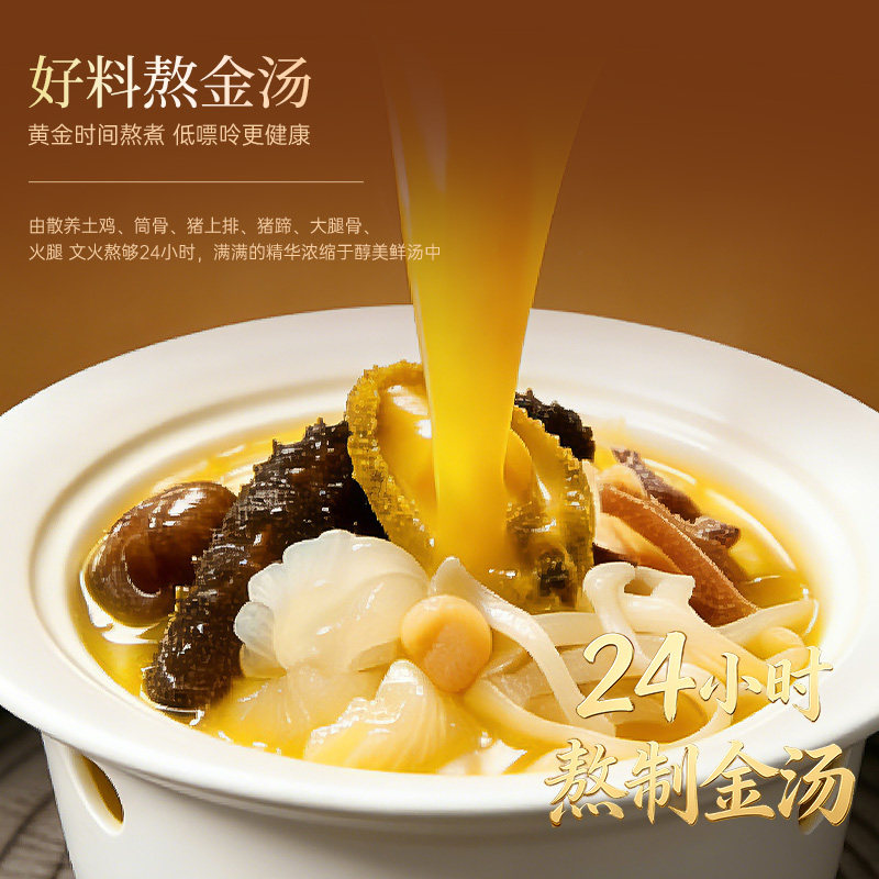 海参鲍鱼花胶真材实料,金汤醇厚鲜香,年夜饭C位硬菜轻松上桌