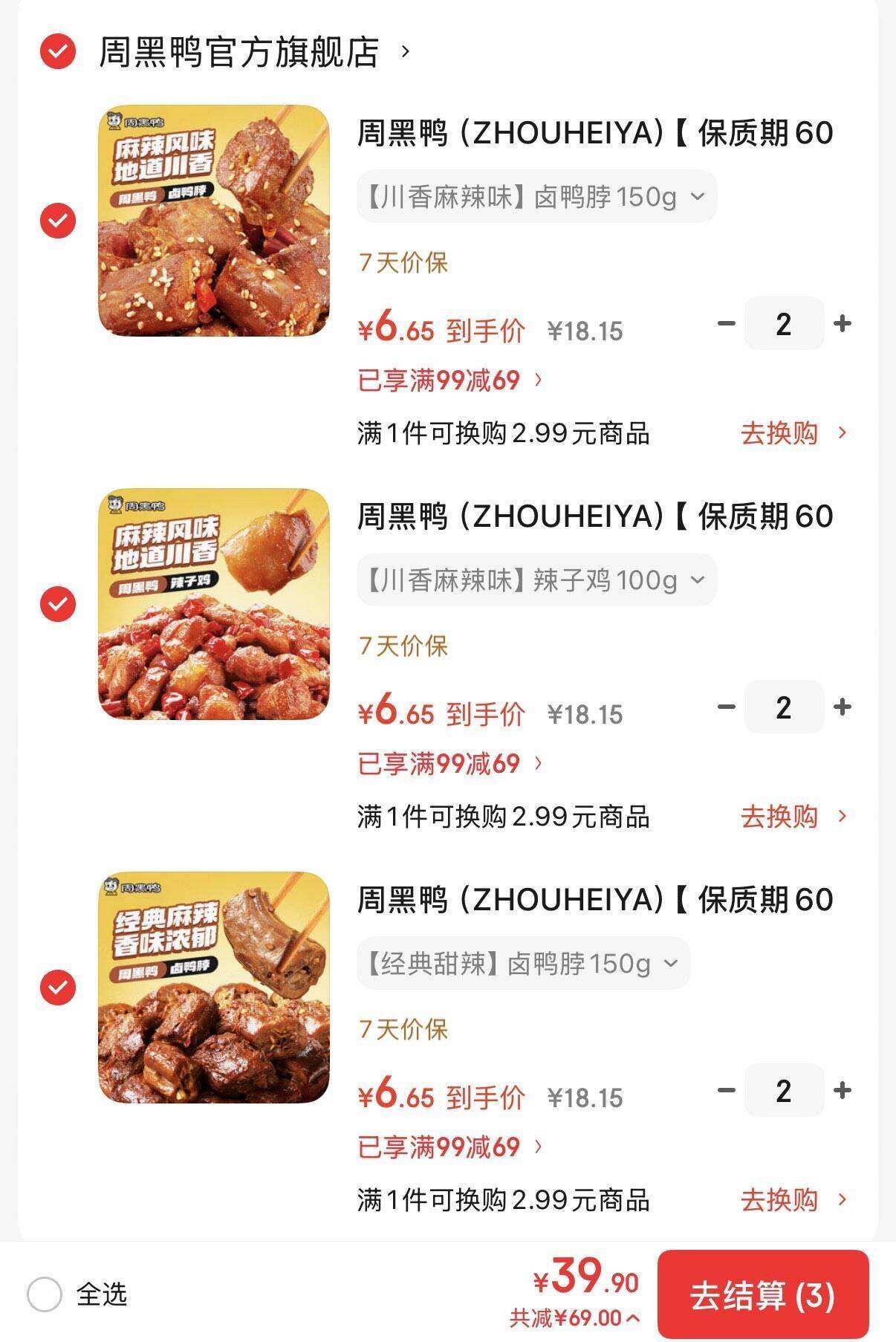 周黑鸭锁鲜卤味鸭脖鸭锁骨