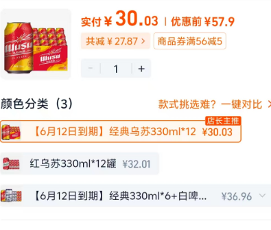 金典红乌苏啤酒+13元2斤半卫龙辣条+奥康内裤