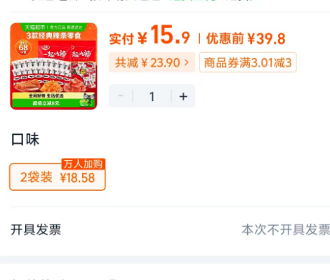 1.天猫超市搜【卫龙】拿2亓品牌金