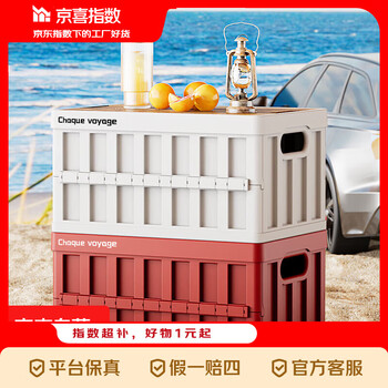 手慢无!!!14.99🉐露营折叠储物箱带木纹盖50L