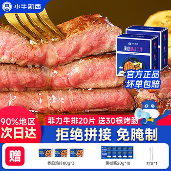 小牛凯西菲力牛排1.3kg/20片 到手129.9元;