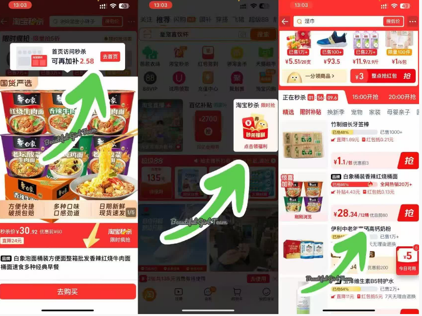 领券 等一下-点击顶部 秒到-桃宝秒杀-点进去拍下