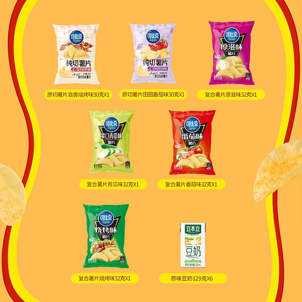 6包薯片+6盒豆本豆奶
